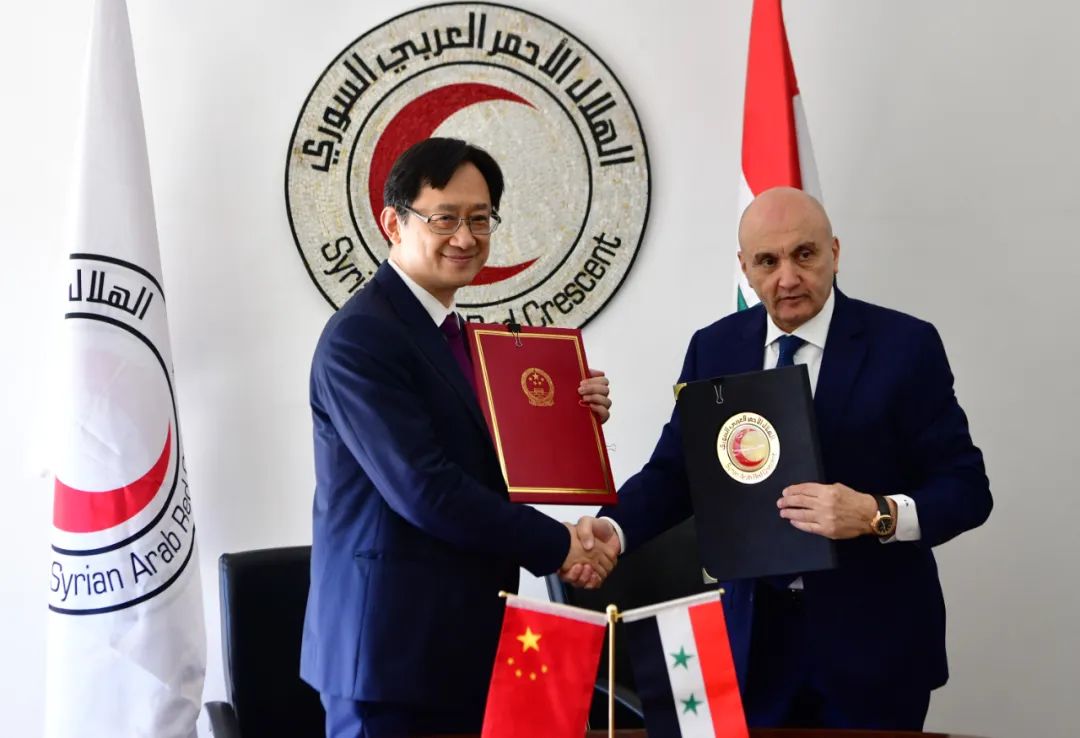微信公眾號“中國駐敍利亞大使館”消息,2023年6月11日,中國政府援助敍利亞3516噸糧食交接儀式在敍首都大馬士革舉行,駐敍大使史宏微、敍紅新月會會長哈立德·哈布巴提共同出席並接受中央廣播電視總枱、新華社聯合採訪。