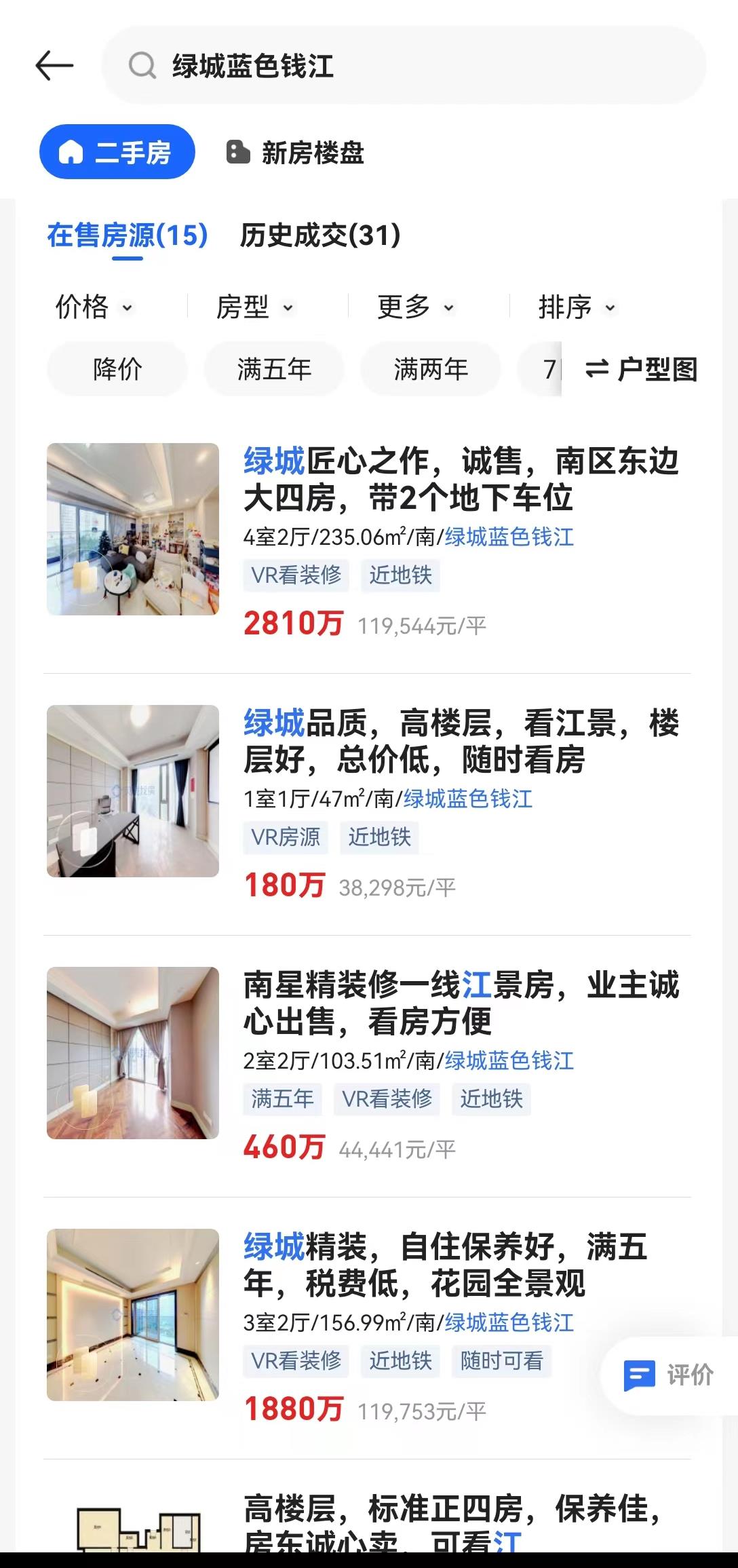 截至發稿,貝殼找房上顯示藍色錢江小區掛牌在售房源共15套,並無同品類360平方米江景房,而次一級的235平方米與157平方米房源均價都接近12萬元/平方米。