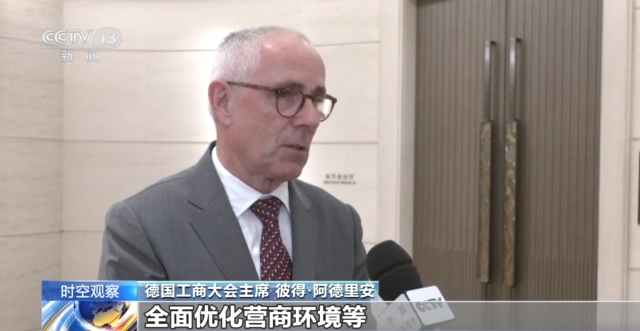 德國工商大會主席彼得·阿德里安:我們通過面對面的對話,獲得了許多積極信號,包括中國政府致力於不斷提高開放水平、全面優化營商環境等,這對於跨國企業來説提供了確定性。