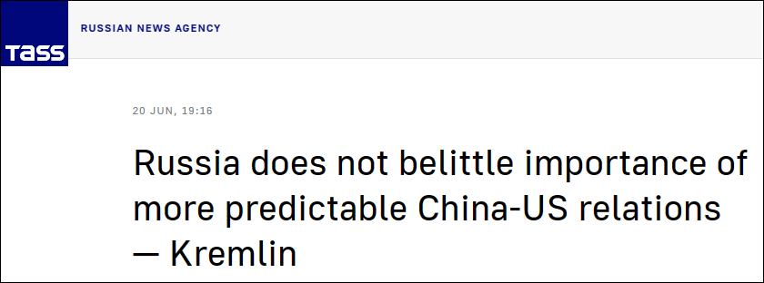據塔斯社報道,佩斯科夫當地時間6月20日對媒體表示:“毫無疑問,在這種情況下,中國是在行使與其他國家建立關係的主權權利。而且,不應該低估和輕視中美構建可預測關係的重要性。同時,(俄羅斯)與中國之間戰略伙伴關係的水平讓我們相信,(中國)與其他國家的這種關係永遠不會針對我們國家。”