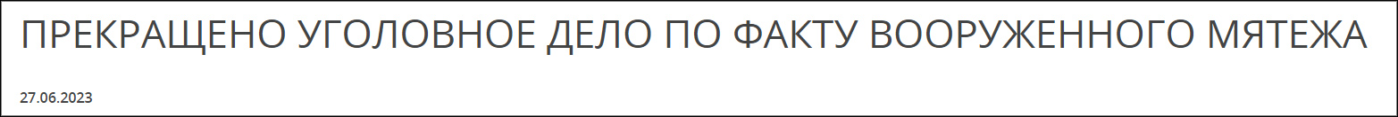 (觀察者網訊)當地時間6月27日,俄羅斯聯邦安全局(FSB)網站發佈聲明稱,已撤銷此前發起的針對瓦格納僱傭兵集團“武裝叛亂”的刑事立案。