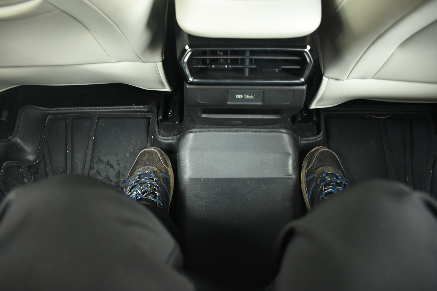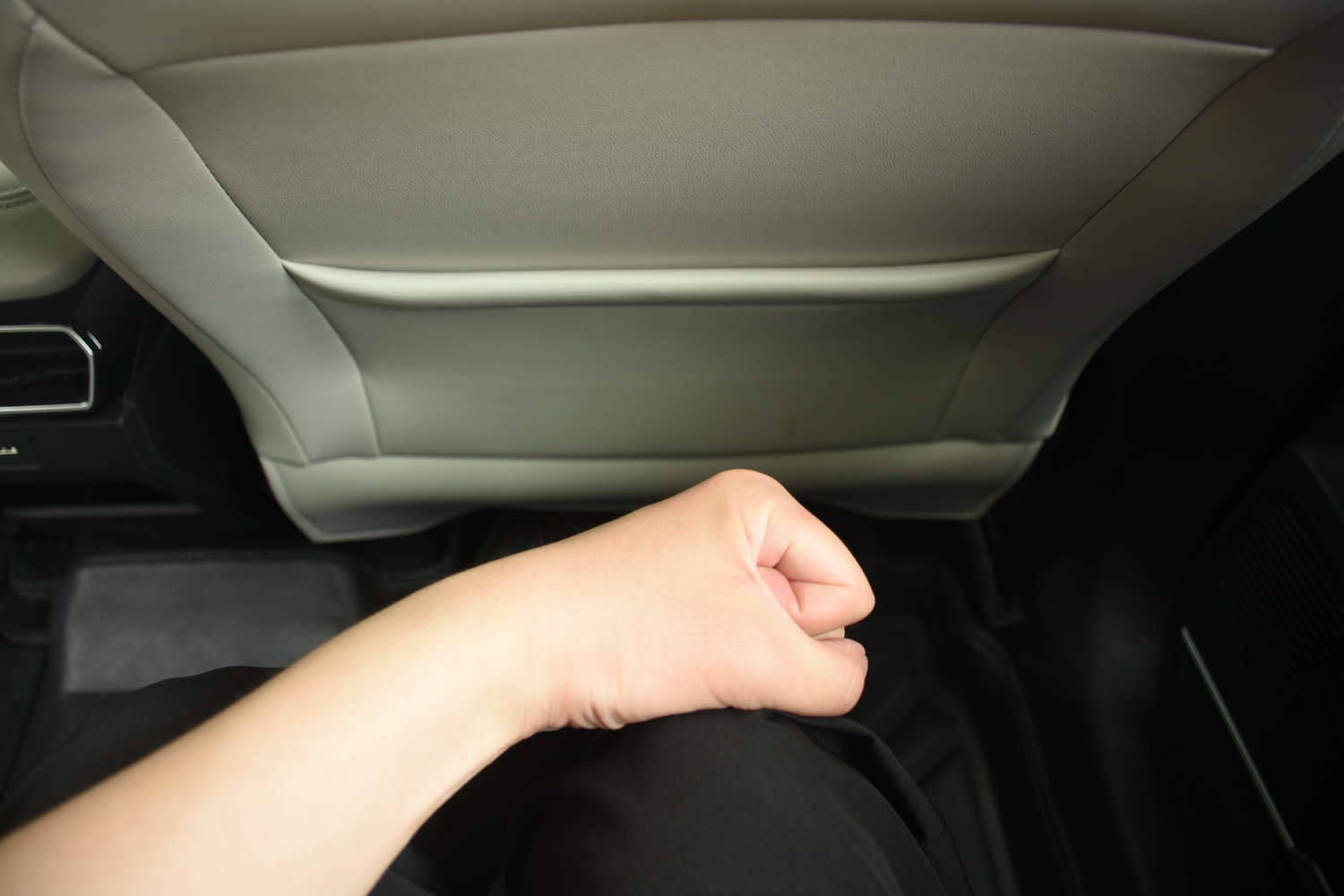 然而,同級較長的軸距卻帶給了博越COOL充足的乘坐空間。在前排默認座椅位置下,後排乘客膝部距離前排至少能放下兩拳,頭部距車頂也有一拳以上。此外與一些合資SUV不同的是,博越COOL的地台相對平整,中間只有很小一部分凸起,這意味着後排即使坐三個人也不會擁擠。