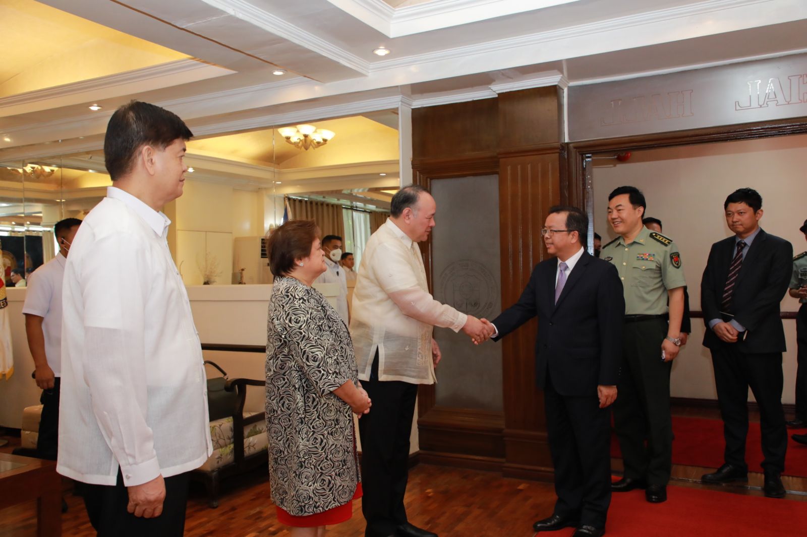 黃大使表示,中菲是隔海相望的近鄰,兩國交往源遠流長。建交以來,中菲關係保持總體向前發展勢頭,給兩國人民帶來了切實利益。今年初,馬科斯總統成功訪華,兩國元首就發展中菲全面戰略合作關係達成重要共識。不久前,中國海軍“戚繼光”艦成功訪問馬尼拉,標誌着因疫情影響的兩軍交往得到恢復。中方願同菲方一道,共同推動兩國開展更多軍事交流合作。