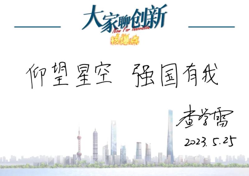 探索浩瀚宇宙,是我們不懈追求的航天夢,航天夢是中國夢的組成部分,航天強國是科創中國的重要組成部分。查學雷説,航天工程也都是系統工程,航天員在軌工作,背後幾十萬人為他們付出努力,大家合作起來,就能把創新的任務完成好。