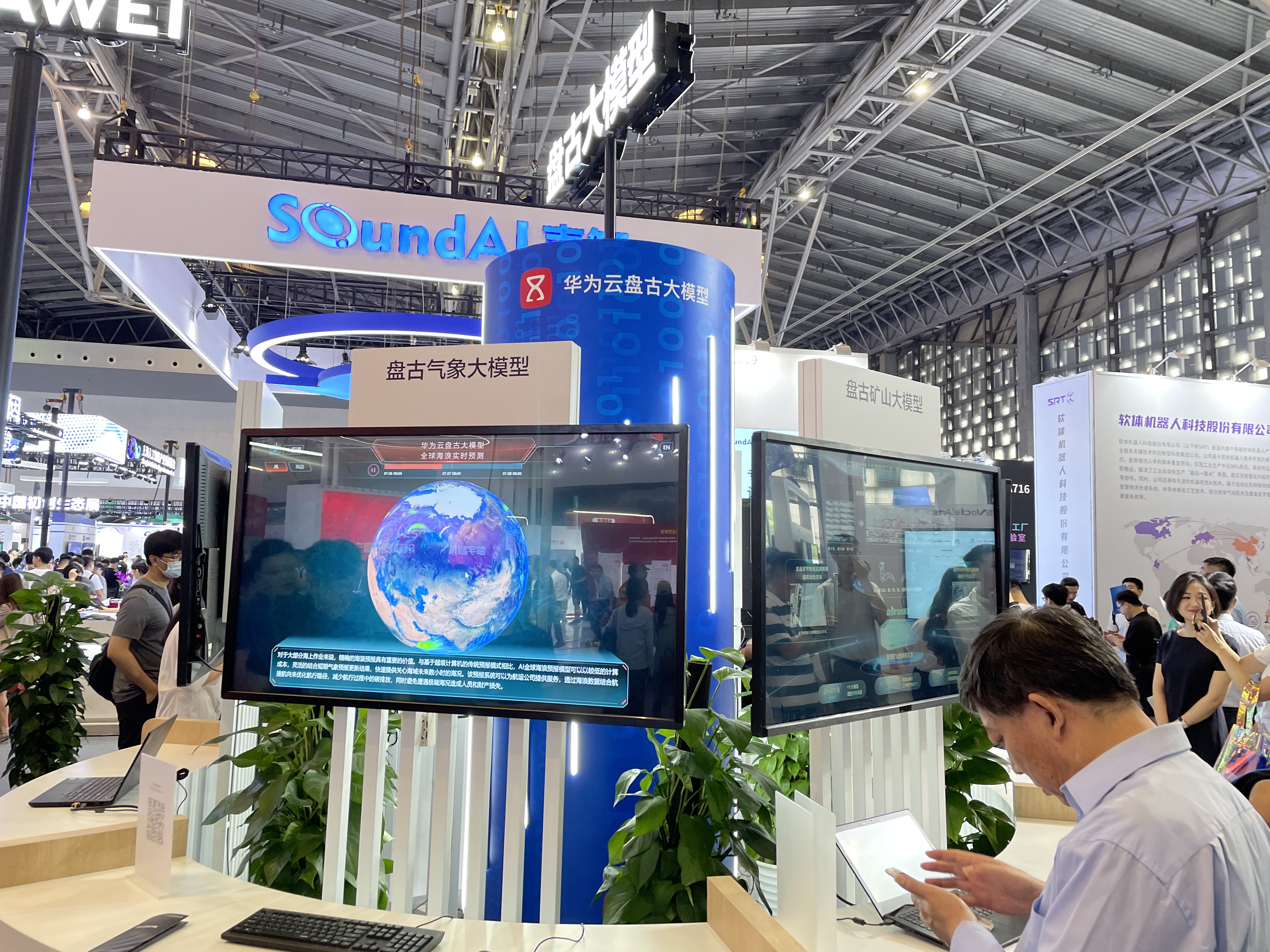 大模型和AIGC無疑是本次大會的焦點,華為、阿里、百度、科大訊飛等多家廠商的30餘款大模型亮相世博展覽館,涵蓋圖片生成、視頻生成、數字人等諸多AIGC項目的展台更是吸引大批觀眾。