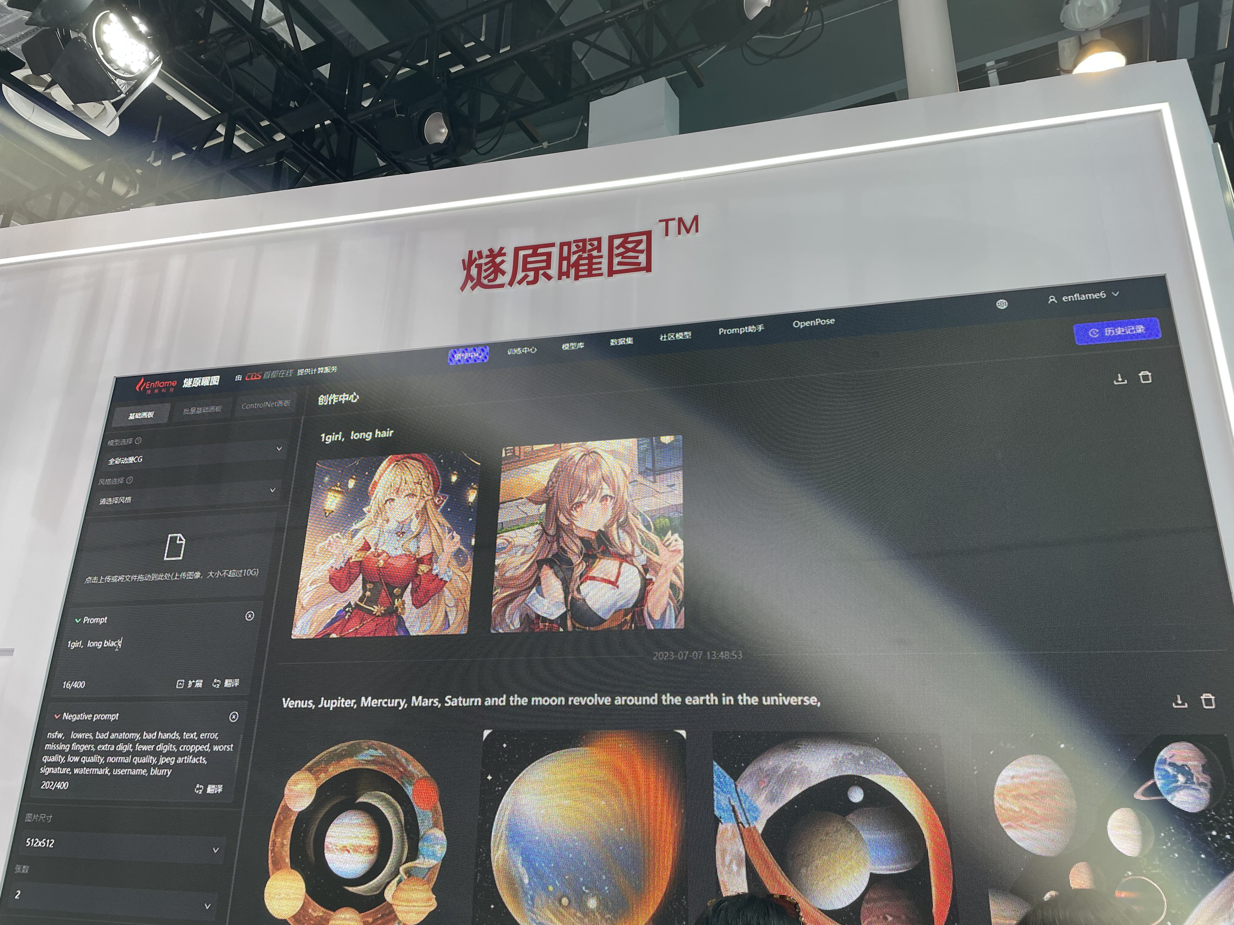 商湯科技展台展示了“秒畫SenseMirage”生成的圖像,這是一個包含商湯自研AIGC大模型和便捷的LoRA訓練能力,並提供第三方社區開源模型加速推理的創作平台。據介紹,秒畫SenseMirage 3.0的自研生成大模型參數提升至70億量級,具有更強的中文理解能力、更多樣化的風格選擇。