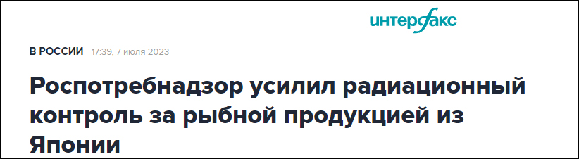 報道顯示,為防止日本生產的放射性核素濃度較高的水生物資源及其產品(魚、魚製品、海產品等)進入俄羅斯境內,俄羅斯消費者權益保護和公益監督局指示,加強上述產品進入俄聯邦的衞生檢疫措施並加強流通控制。
