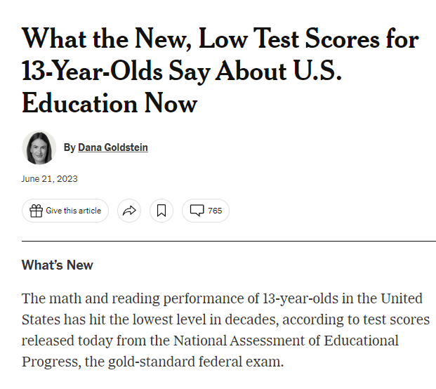 美媒:美國青少年數學和閲讀能力達30年最低