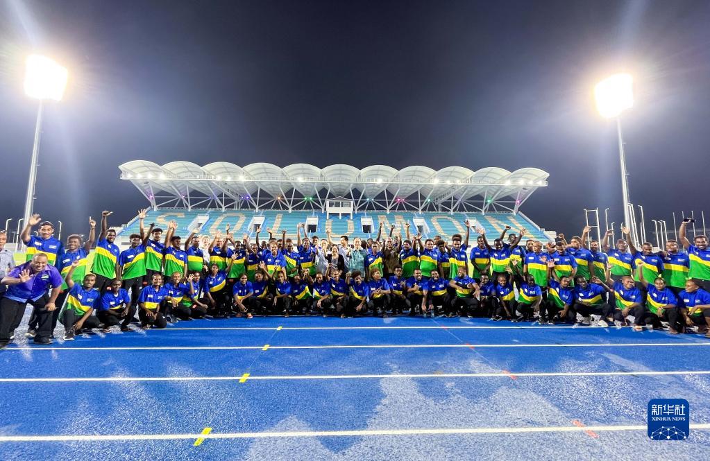 6月30日晚,中國駐所羅門羣島大使館為即將赴華訓練的運動員和教練員舉行了出征儀式。該體育場為中國援建。(圖源:新華社)
