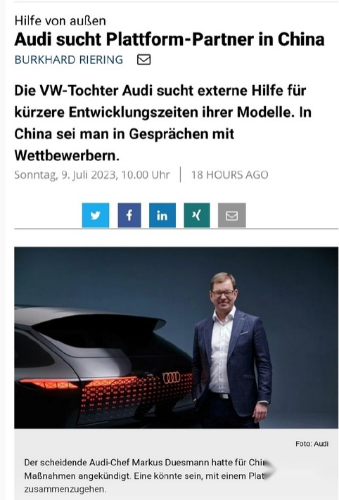 杜斯曼曾在6月中旬表示,奧迪必須加快新車型的研發以滿足全球市場,以應對中國市場對電動汽車需求的激增,
