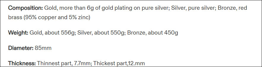 值得一提的是,東京奧運會獎牌的質量一直備受爭議。2021年8月,在東京奧運會閉幕當月,東京奧運會蹦牀女子冠軍獲得者、中國選手朱雪瑩回國隔離期間,發現金牌上缺了一小塊,本以為是獎牌髒了,就拿手蹭了蹭,發現缺口沒變化,就摳了一下,結果……