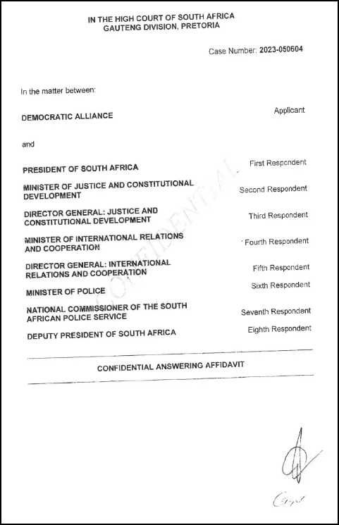 南非最大反對黨“民主聯盟”(Democratic Alliance)5月30日起訴南非總統以及多名內閣成員,希望南非豪登省最高法院規定南非政府,如若普京涉足南非領土,必須遵從國際刑事法院的逮捕令。拉馬福薩於6月28日遞交的一份附誓書面證詞(affidavit),反駁了訴訟提出的多個論點。