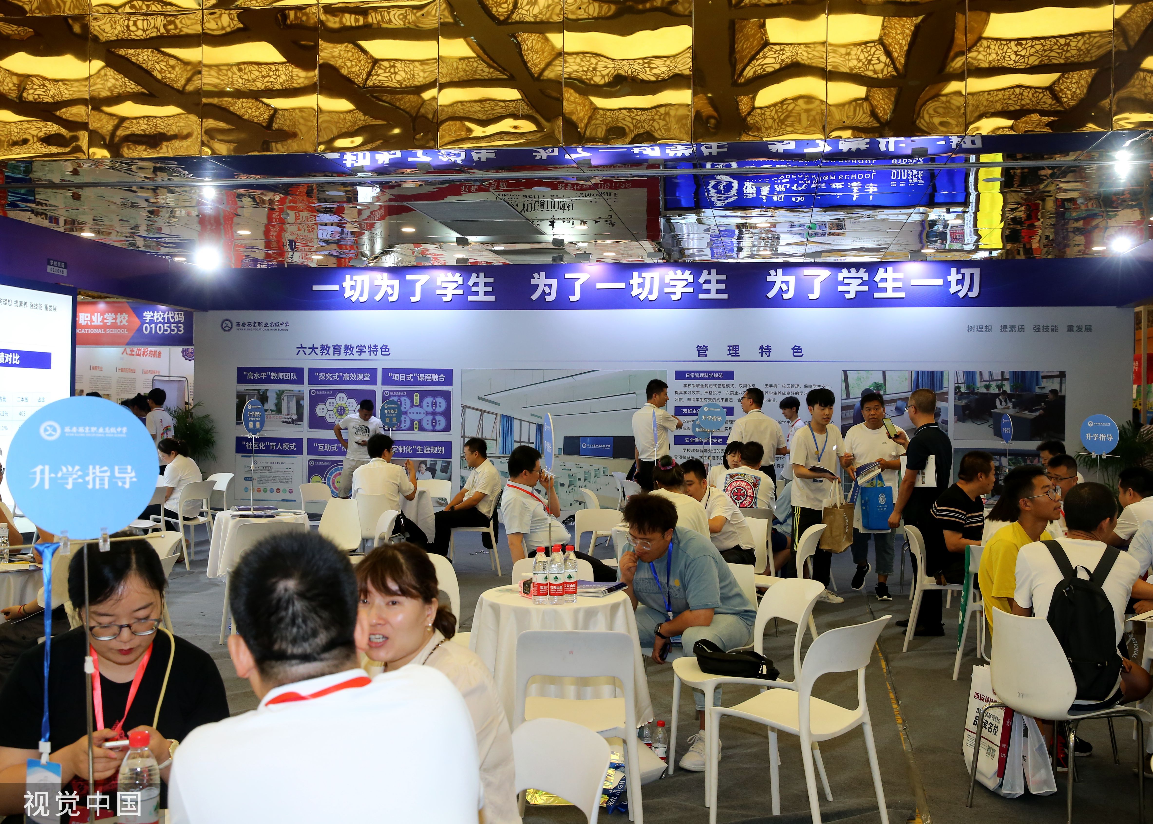 2023年7月8日,西安,“適應新高考·抓住新機遇·迎接新挑戰”大型中考招生諮詢會系列活動開幕,考生、家長現場諮詢。圖:視覺中國