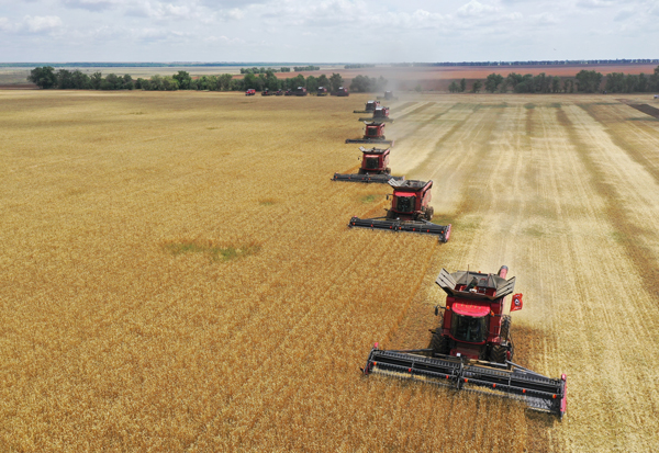 當地時間2023年7月11日,俄羅斯伏爾加格勒,十月鎮地區正在收割小麥。 圖源:視覺中國