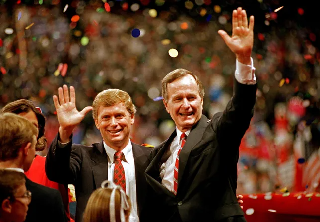 1988年,丹·奎爾是老布什的競選搭檔 美媒圖片