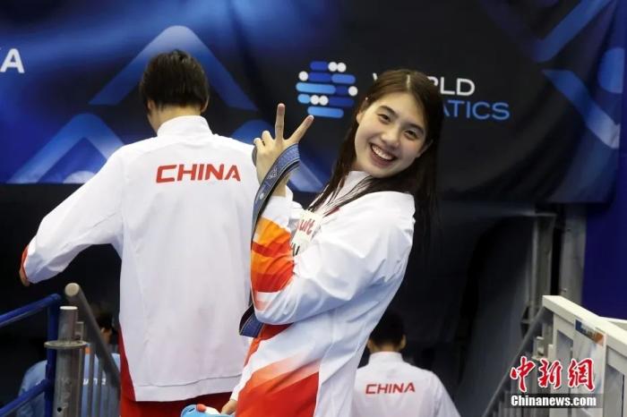 資料圖:張雨霏世錦賽奪冠後慶祝勝利。中新社記者 湯彥俊 攝