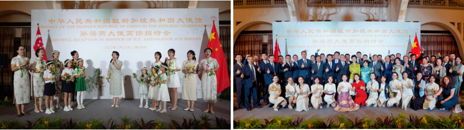 據中國駐新加坡大使館網站7月27日消息,7月26日,孫海燕大使在新加坡富麗敦海灣酒店舉行離任招待會。新加坡政府、商界、僑團、媒體、文化團體代表和各國使節等500多人出席。
