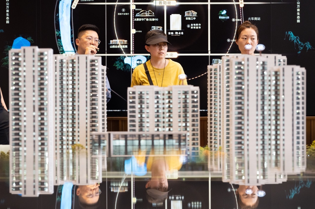 2023年7月14日,山西省太原市,置業顧問為民眾推薦商品房户型。7月政治局會議首次明確提出,適應中國房地產市場供求關係發生重大變化的新形勢,適時調整優化房地產政策。/IC Photo