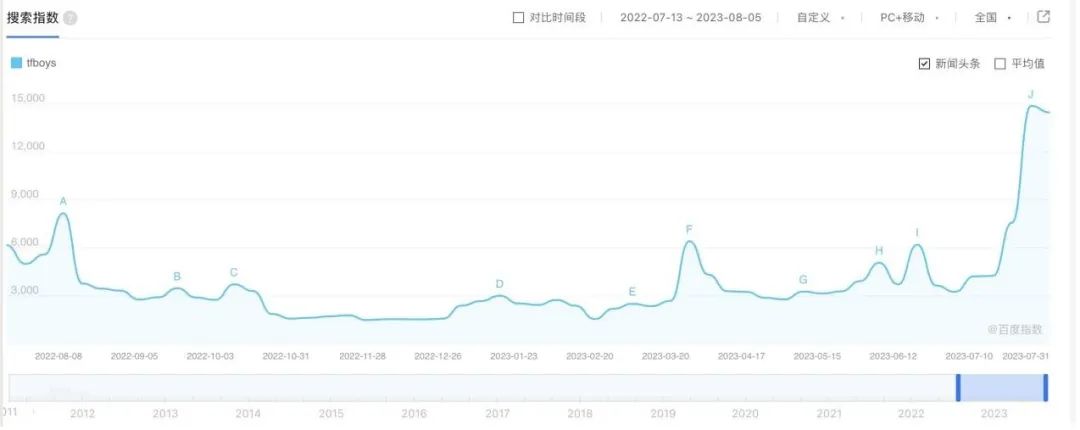 百度指數顯示,開票當天,7月24日以來,“TFBOYS”的搜索量急速上升,其中在8月5日,搜索指數接近35000。