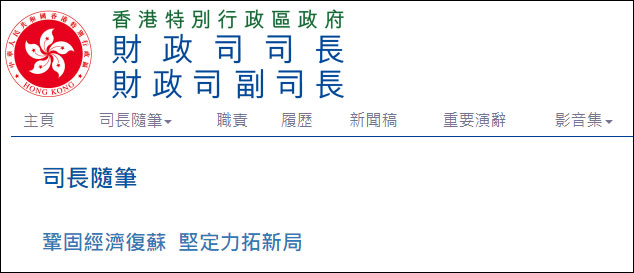 8月13日,香港特區政府財政司司長陳茂波在社交平台和特區政府官網發表文章,對今後香港經濟發展作出展望。