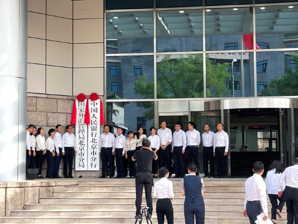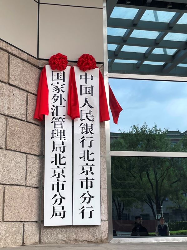 8月18日8時18分左右,中國人民銀行北京市分行舉行揭牌儀式。第一財經在現場看到,目前新的標牌已經掛出,分別為:中國人民銀行北京市分行、國家外匯管理局北京市分局,原中國人民銀行營業管理部的標牌仍然保留。