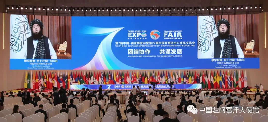 據微信公眾號“中國駐阿富汗大使館”8月18日消息,8月16日,第7屆中國—南亞博覽會暨第27屆中國昆明進出口商品交易會在雲南昆明開幕。阿富汗臨時政府代理副總理卡比爾在開幕式上發表視頻致辭。
