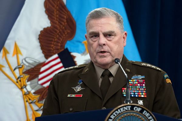 當地時間2023年7月18日,美國華盛頓特區,在華盛頓五角大樓,參謀長聯席會議主席馬克·米利在新聞發佈會上發表講話。圖源:視覺中國