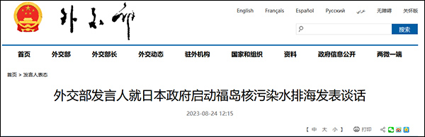 據外交部網站8月24日消息,外交部發言人就日本政府啓動福島核污染水排海發表談話。