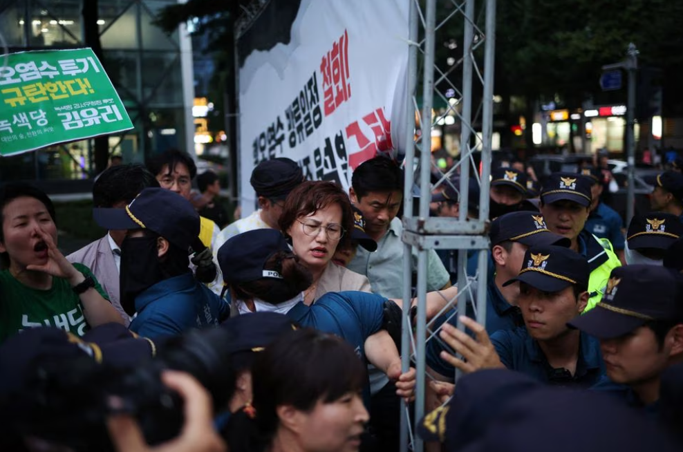 8月22日,韓國民眾走上首爾街頭抗議日本將核污染水排海(圖源:路透社)