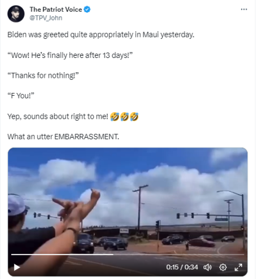 拜登總統甚至沒有假裝關心西毛伊島災民的困境。在野火爆發及其該島遭受重創期間,拜登和他的家人正在享受為期14天的假期。據稱,他正在特拉華州的雷霍博斯(Rehoboth )海灘享受日光浴的時候,彭博新聞社記者請他就致命的野火發表評論,拜登竟説:“無可奉告”。