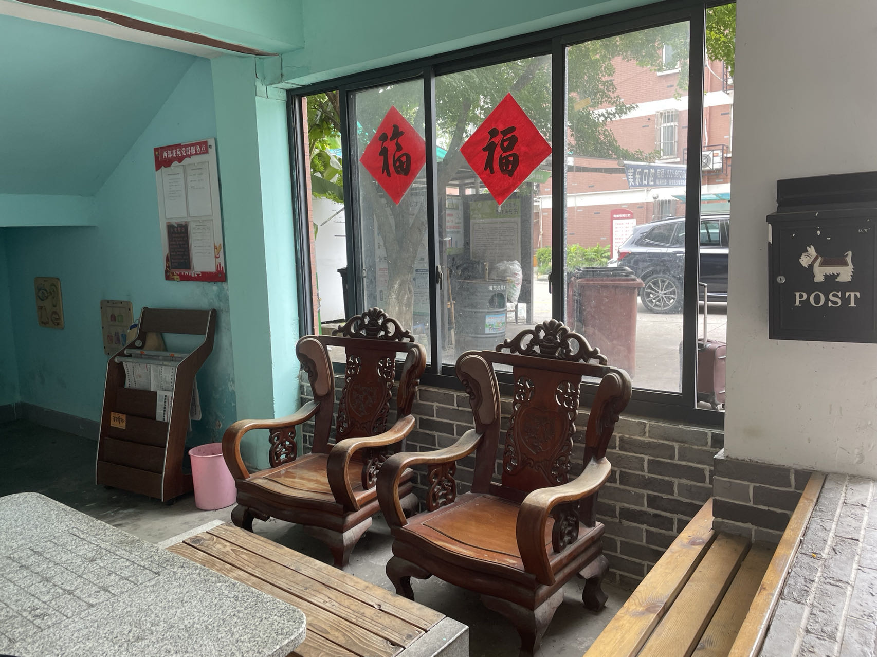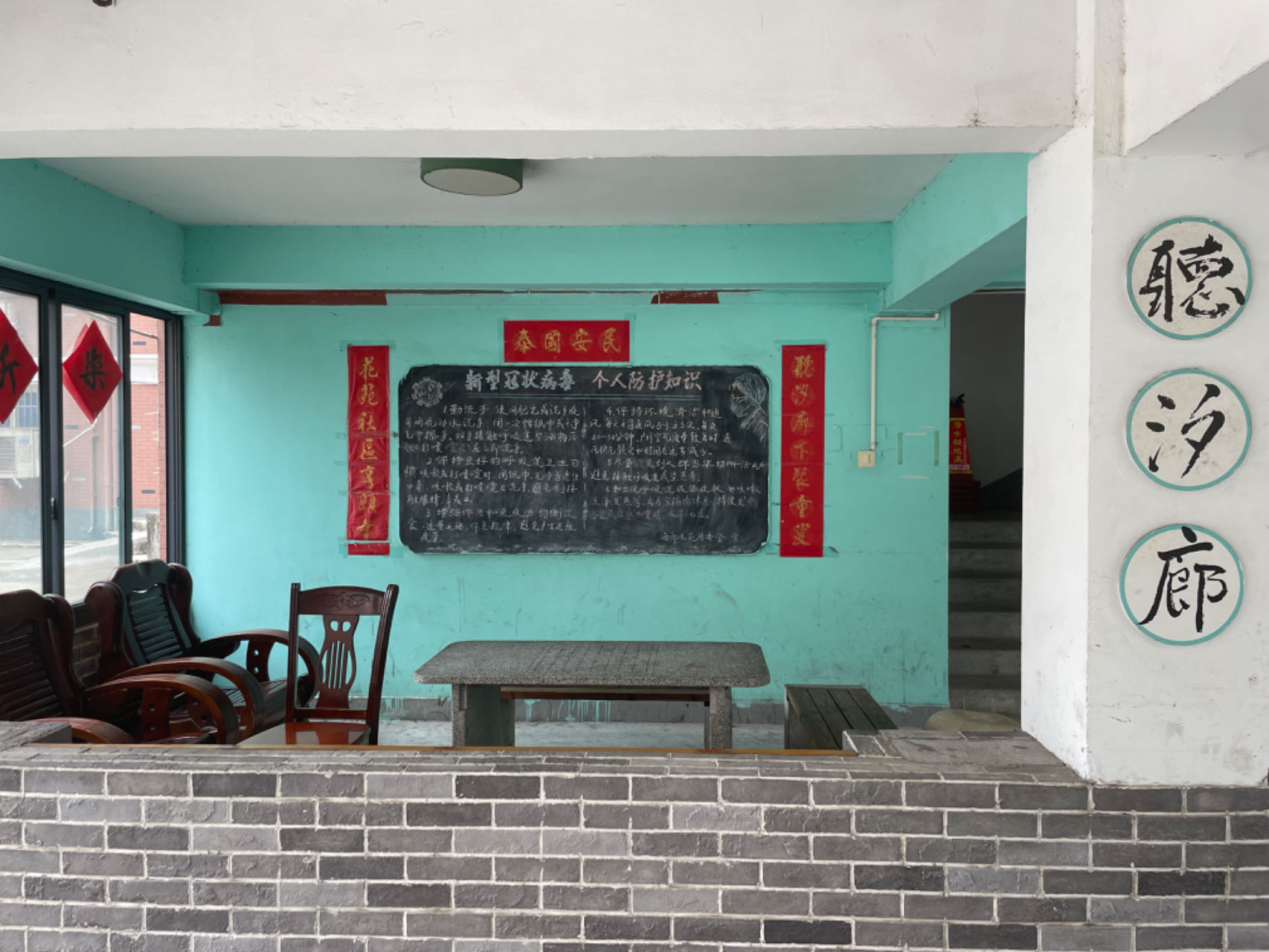 隨着石桌石椅、防腐木圍欄、黑板報等的設置,原來的“老大難”有了巨大的改變——不僅成為了大家共同的休憩之所,更成了居民“家門口”聊天遊戲的場地。社區居民自發為“微家”題字——聽汐廊,而且還主動擔起了這片公共空間的清掃。