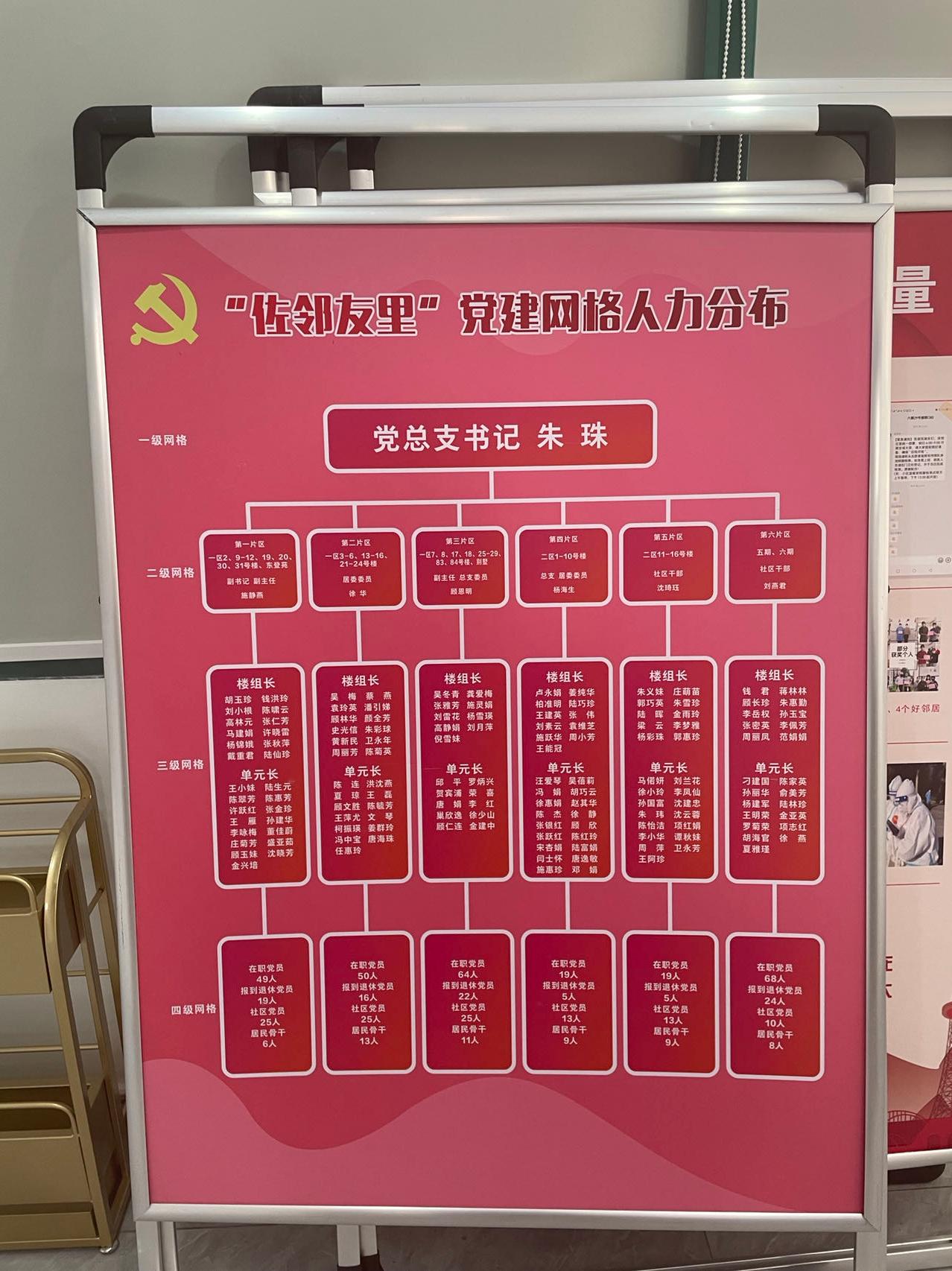西部花苑“佐鄰友裏”四級黨建網絡人力分佈圖。本文圖片由澎湃新聞記者 李思潔 攝