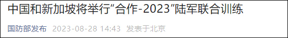 中國和新加坡將舉行“合作-2023”陸軍聯合訓練