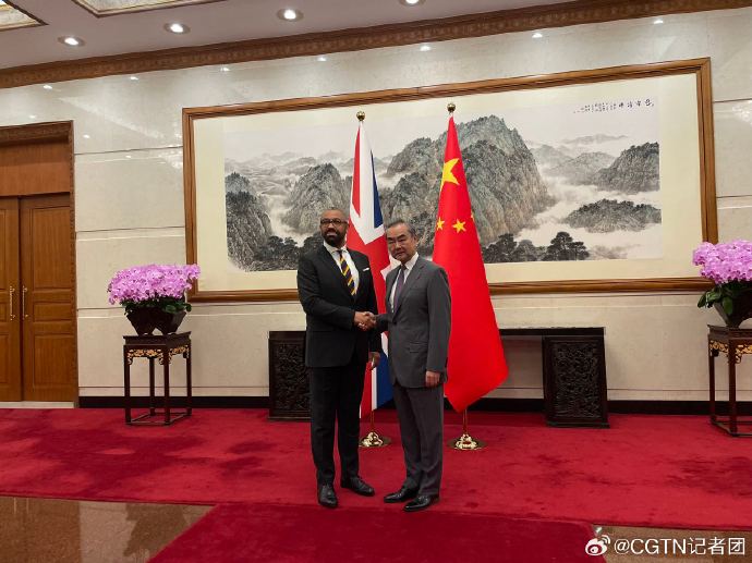 王毅會見英國外交大臣 None 2023-08-30 @ CGTN記者團 8月30日消息,中共中央政治局委員,中央外辦主任王毅在北京會見英國外交大臣克萊弗利。這也是克萊弗利上任後對中國進行的首次正式訪問。