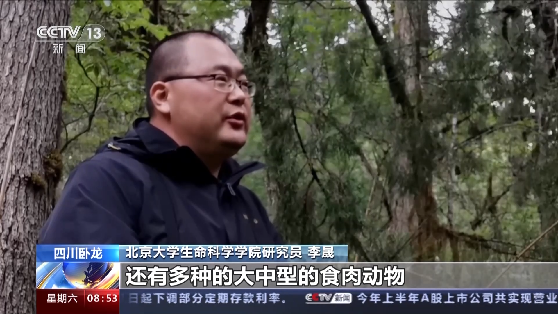 北京大學生命科學學院研究員李晟:除了野生的白色大熊貓之外,還有普通的黑白色大熊貓,還有多種的大中型的食肉動物生活在這片區域裏面,包括和大熊貓同屬熊科的亞洲黑熊,還有海拔稍高地方分佈的狼和雪豹,以及在海拔稍低的地方分佈的金錢豹、豺。除此之外,還有一些食肉動物,包括赤狐、豹貓、小熊貓等,它們都和這些大熊貓共同生活在這樣的同一片棲息地。
