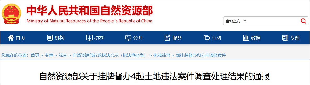 據自然資源部網站8月29日消息,2022年9月和11月,自然資源部公開掛牌督辦4起土地違法案件,按照《自然資源部掛牌督辦和公開通報違法違規案件辦法》規定,現將案件調查處理結果通報如下。