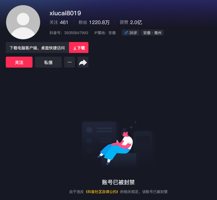 9月2日,觀察者網搜索發現,近日頗受關注的主播“秀才”被封號,原因是違反《抖音社區自律公約》的相關規定。