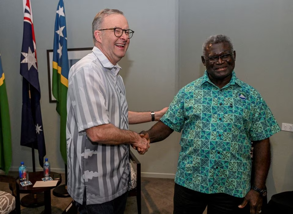 2022年7月13日,澳大利亞總理阿爾巴尼斯與所羅門羣島總理索加瓦雷會面(圖源:路透社)