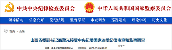據中央紀委國家監委網站9月5日消息,山西省委副書記商黎光涉嫌嚴重違紀違法,目前正接受中央紀委國家監委紀律審查和監察調查。