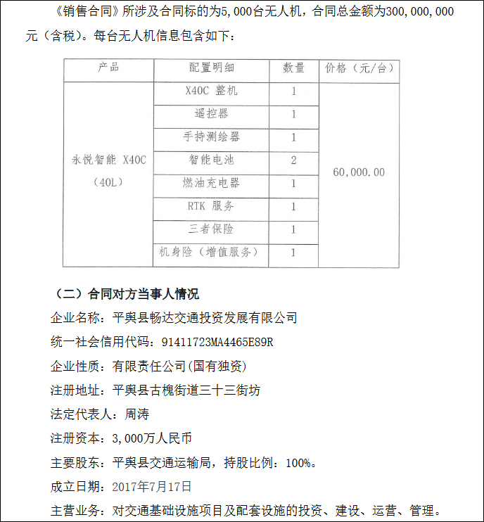 河南平輿縣屬國企3億買5千台無人機?永悦科技:合同真實有效