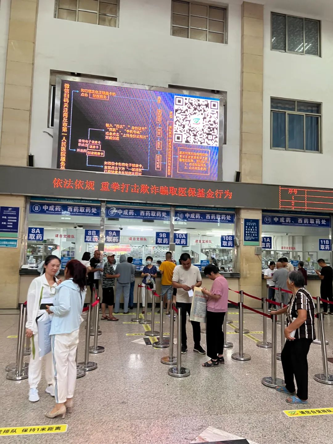 商丘市第一人民醫院是一家有着百餘年曆史的醫院。一進醫院大門,就見“醫保管理中心”的牌子,非常醒目。門診大樓一樓大廳的電子屏幕上不時閃出 “安全規範用基金,守好人民‘看病錢’”“依法依規,重拳打擊欺詐騙取醫保基金行為”等紅色標語。