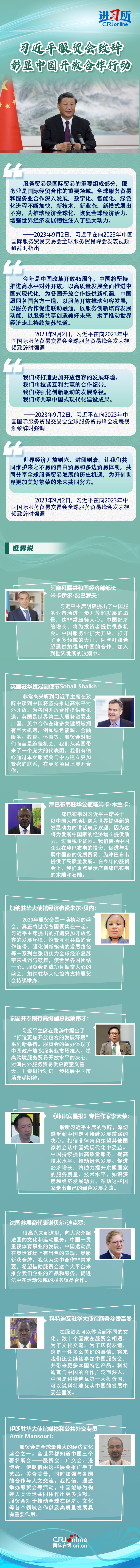 【本期導讀】9月2日,2023年中國國際服務貿易交易會在北京開幕,80餘個國家和國際組織設展辦會,2400餘家企業線下參展。當天上午,中國國家主席習近平向本次服貿會全球服務貿易峯會發表視頻致辭,就以服務推動世界經濟走上持續復甦軌道宣佈一系列舉措,彰顯中國開放合作的行動。