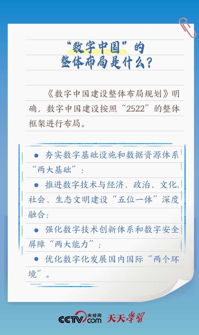 當今世界,信息技術創新日新月異,數字化、網絡化、智能化深入發展。黨的十八大以來,習近平總書記曾多次明確強調推進“數字中國”建設。什麼是“數字中國”?怎樣建設“數字中國”?央視網《天天學習》特整理學習筆記,與您一起學習。