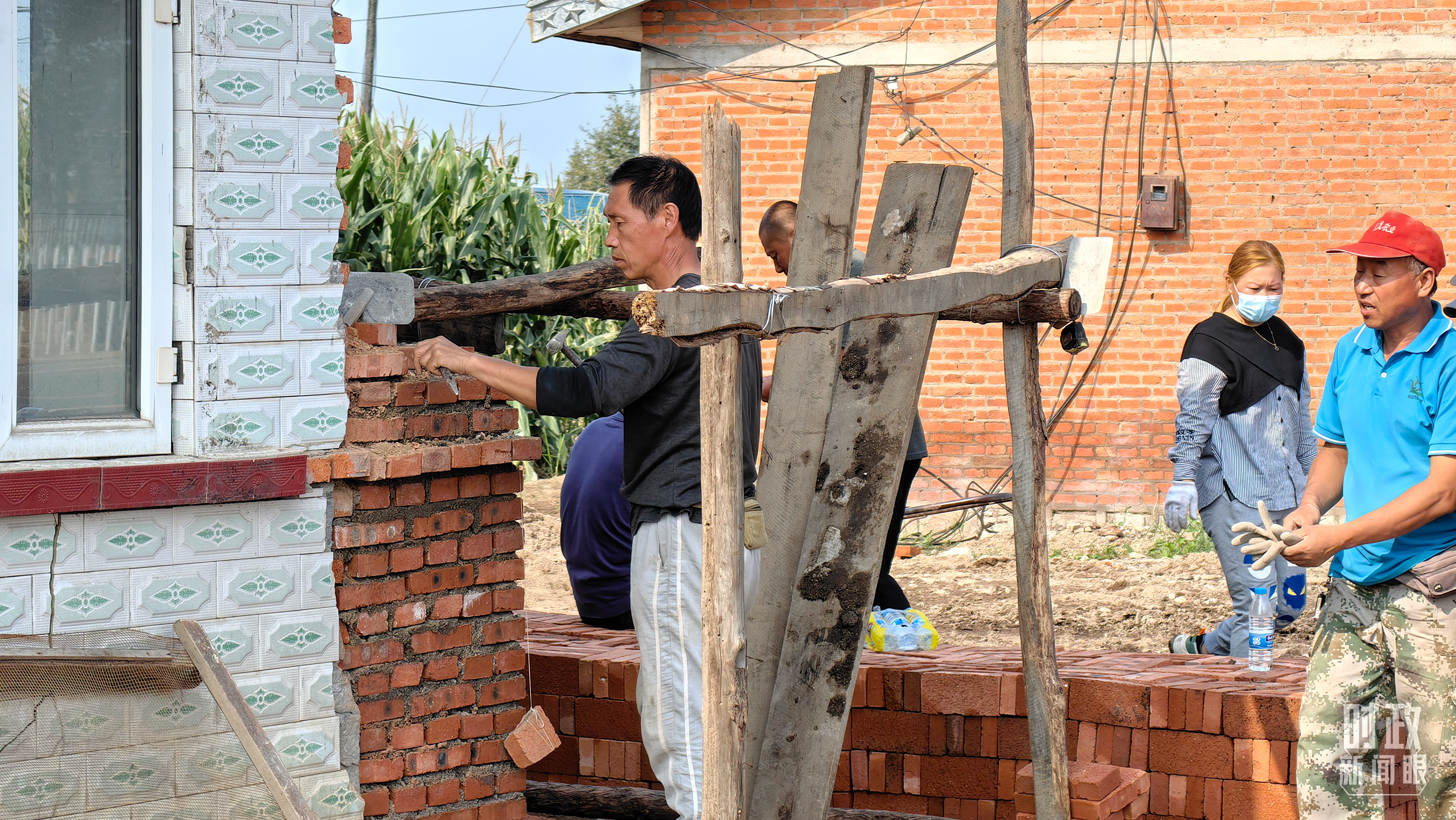 龍王廟村內,村民正在修繕在洪水中受損的房屋。(總枱央廣記者潘毅拍攝)