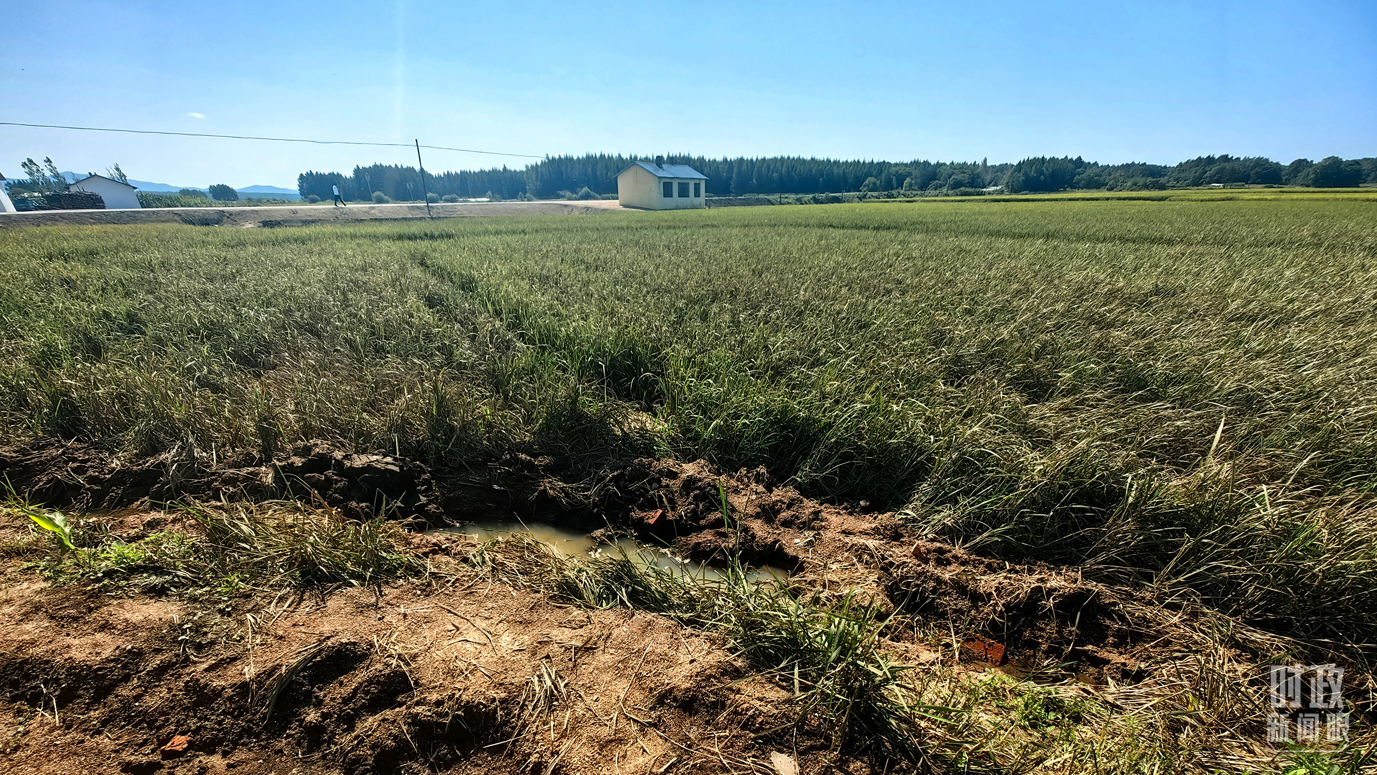 圖為龍王廟村在洪災中受損的農田。(總枱央視記者史偉拍攝)