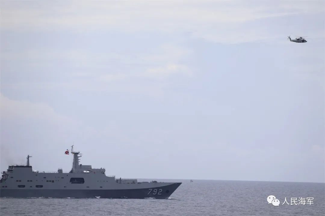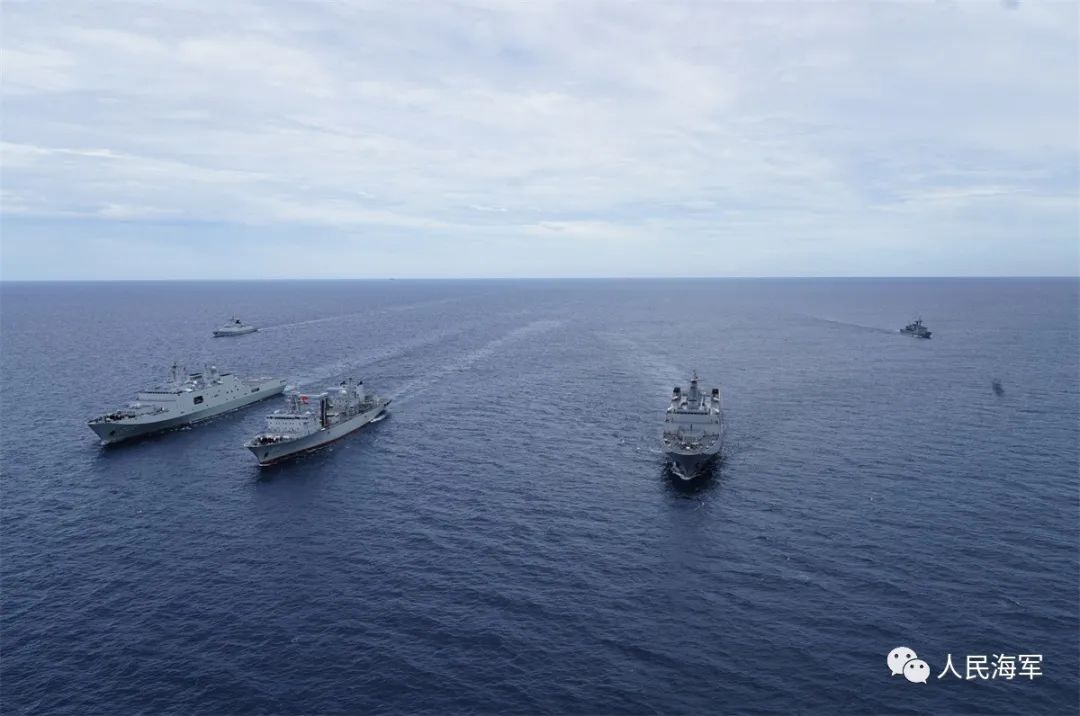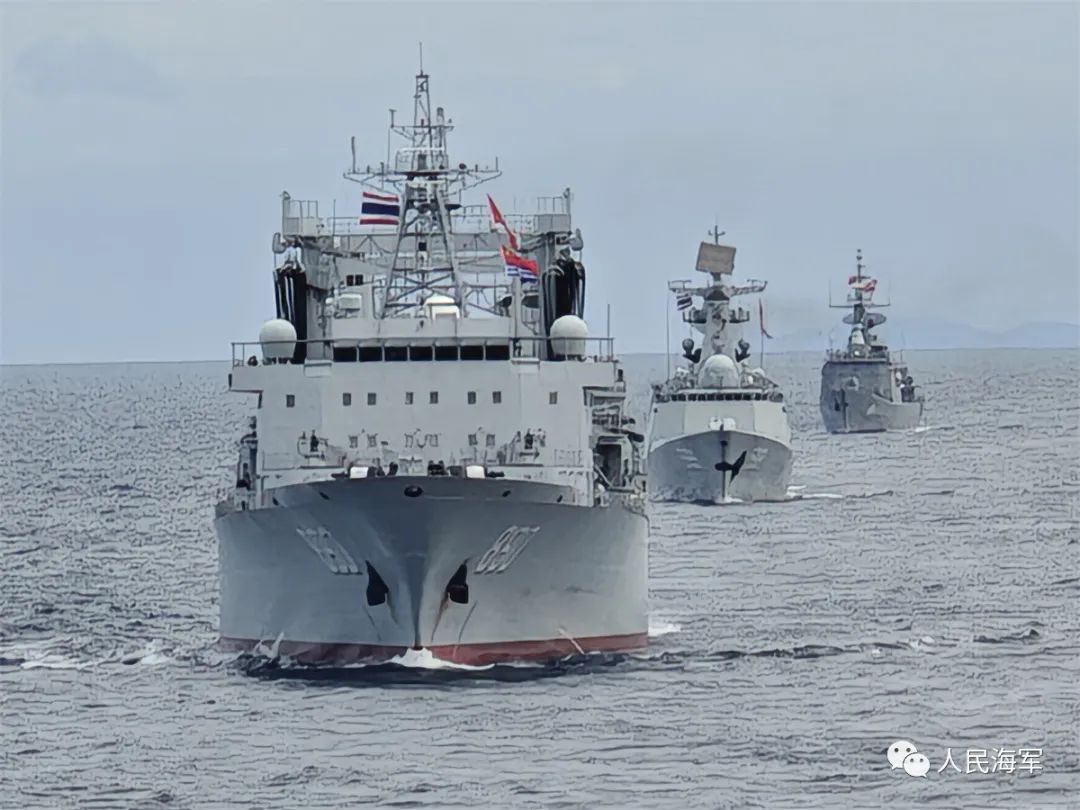 據微信公眾號“人民海軍”9月8日消息,9月8日上午,參加中泰“藍色突擊—2023”海軍聯合訓練的雙方艦艇編隊,按計劃在泰國灣附近海域進行編隊運動訓練並實施航拍。