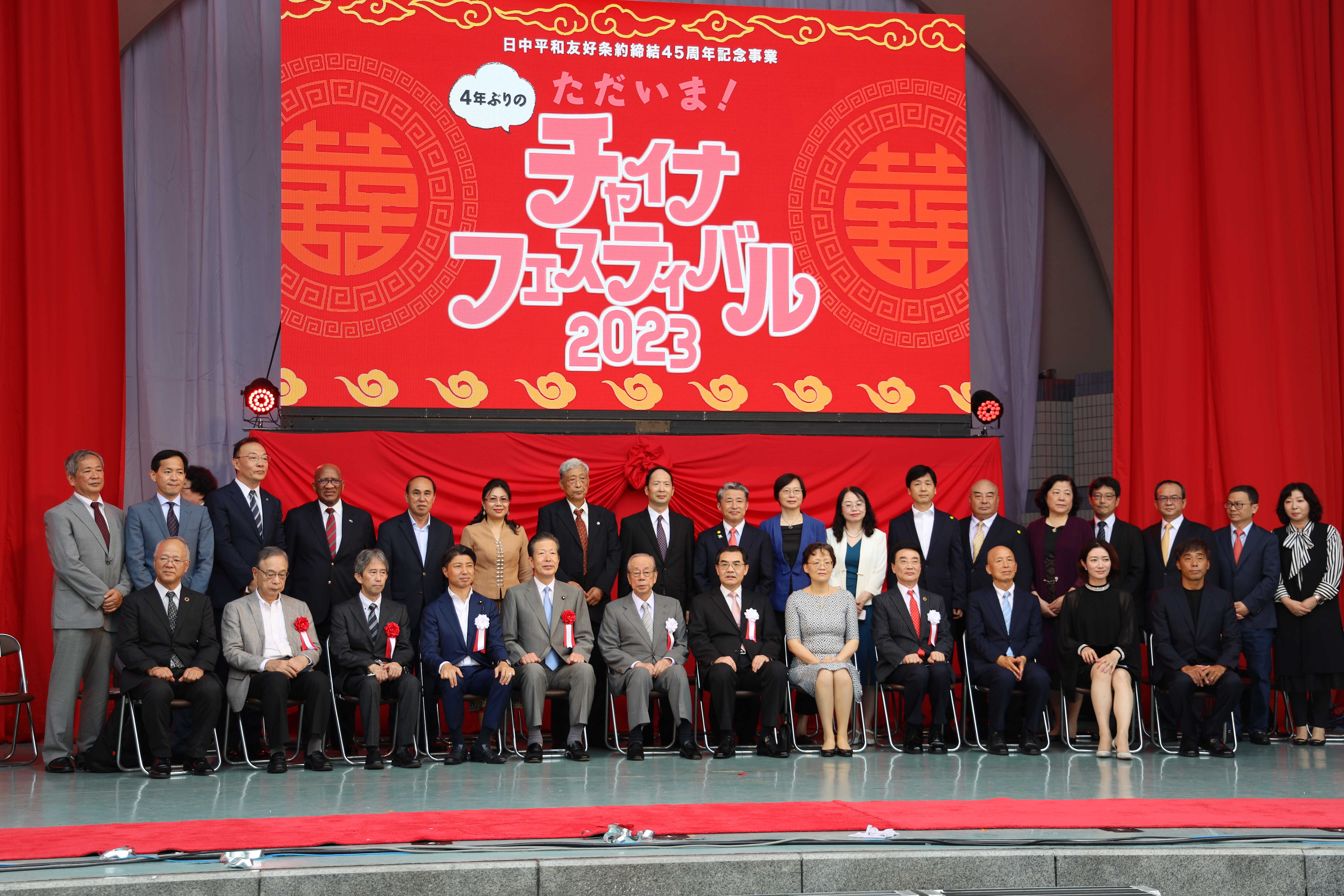 9月9日上午,“2023中國節”在日本東京代代木公園開幕。“2023中國節”實行委員長、駐日本大使吳江浩及夫人丁玥,實行委員會最高顧問、日本前首相福田康夫,實行委員會事務總長、日本眾議員青柳陽一郎,首席實行委員、在日中國企業協會會長王家馴等主辦方代表,公明黨黨首山口那津男,日本政府代表、外務省亞大局審議官巖本桂一,日中友好會館會長代行宮本雄二,全日本華僑華人聯合會理事長賀乃和、會長何德倫,日本知名演員松峯莉璃,滑雪教練佐藤康弘等中日兩國各界代表,南非、柬埔寨、老撾、斯里蘭卡等國駐日使節及現場普通民眾參加開幕式。