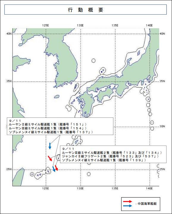 日本防衞省稱,日本海上自衞隊進行了追蹤監視和情報收集。