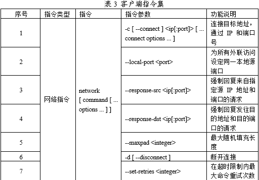 經分析,客户端支持的主要指令及其功能説明如表3所示。
