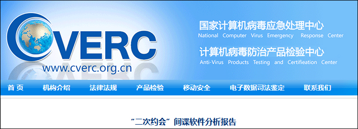 國家計算機病毒應急處理中心網站9月14日發佈《“二次約會”間諜軟件分析報告》。